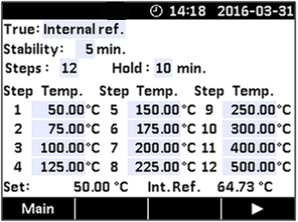 在自动步进功能下zui多可以设置12个温度点, 同时可以设置停留时间。 甚至可以设置稳定判据. 仅需开始运行,干体炉可以自动运行所有过程。